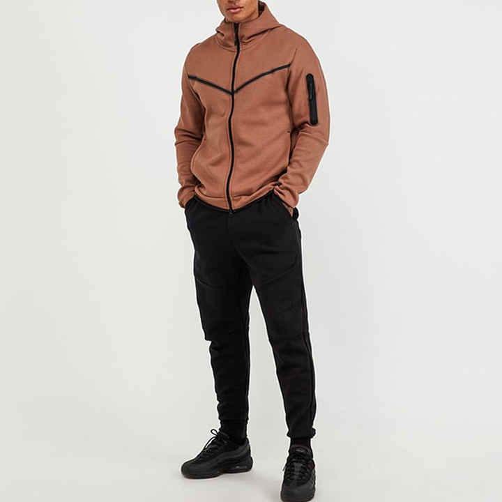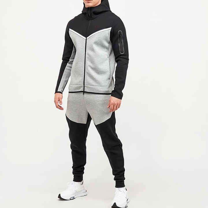 ชุดวอร์มสองชิ้นแบบมีซิปสำหรับผู้ชายชุดวอร์มผ้าฝ้ายแบบกำหนดโลโก้ได้เอง