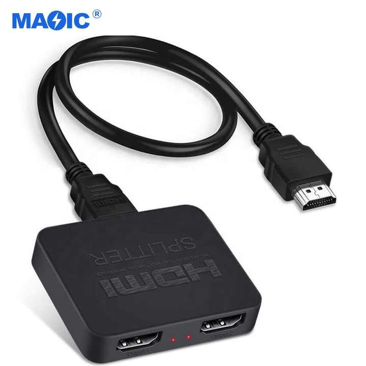 เครื่องแยกสัญญาณ HDMI OEM 4K 30Hz 60Hz 1X2 1อินพุต2เอาต์พุตเครื่องแยกสัญญาณ HDMI อุปกรณ์เครื่องเสียงรองรับ HDR10 3D HDCP 18.5Gbps
