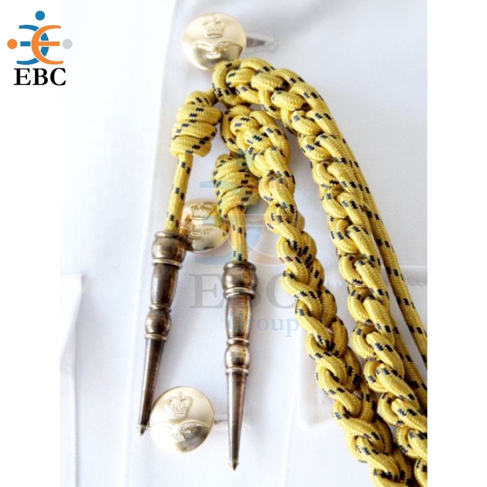 สายสะพายไหล่เครื่องแบบทหารคุณภาพสูง ทำด้วยมือ แบบ OEM สีตามสั่ง สายไหมสีดำ ปลายโลหะผสมโครเมียมทองเหลือง