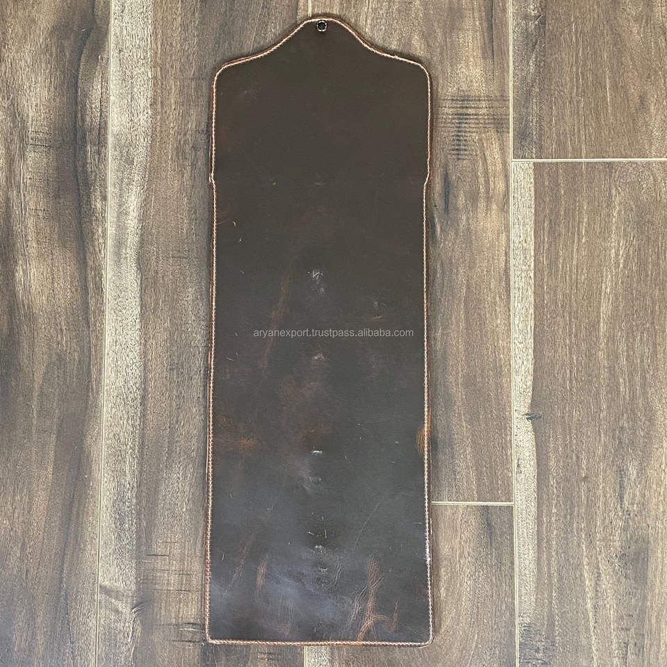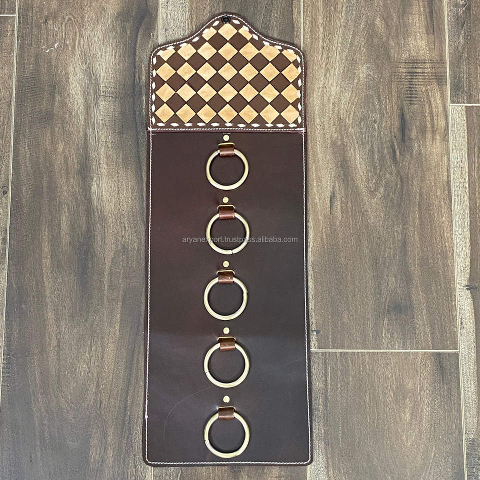 ที่แขวนผ้าพันคอแบบติดผนัง ทำจากหนังแท้ ลายตารางหมากรุก งานแฮนด์เมดสไตล์ตะวันตก พร้อมห่วงทองเหลือง