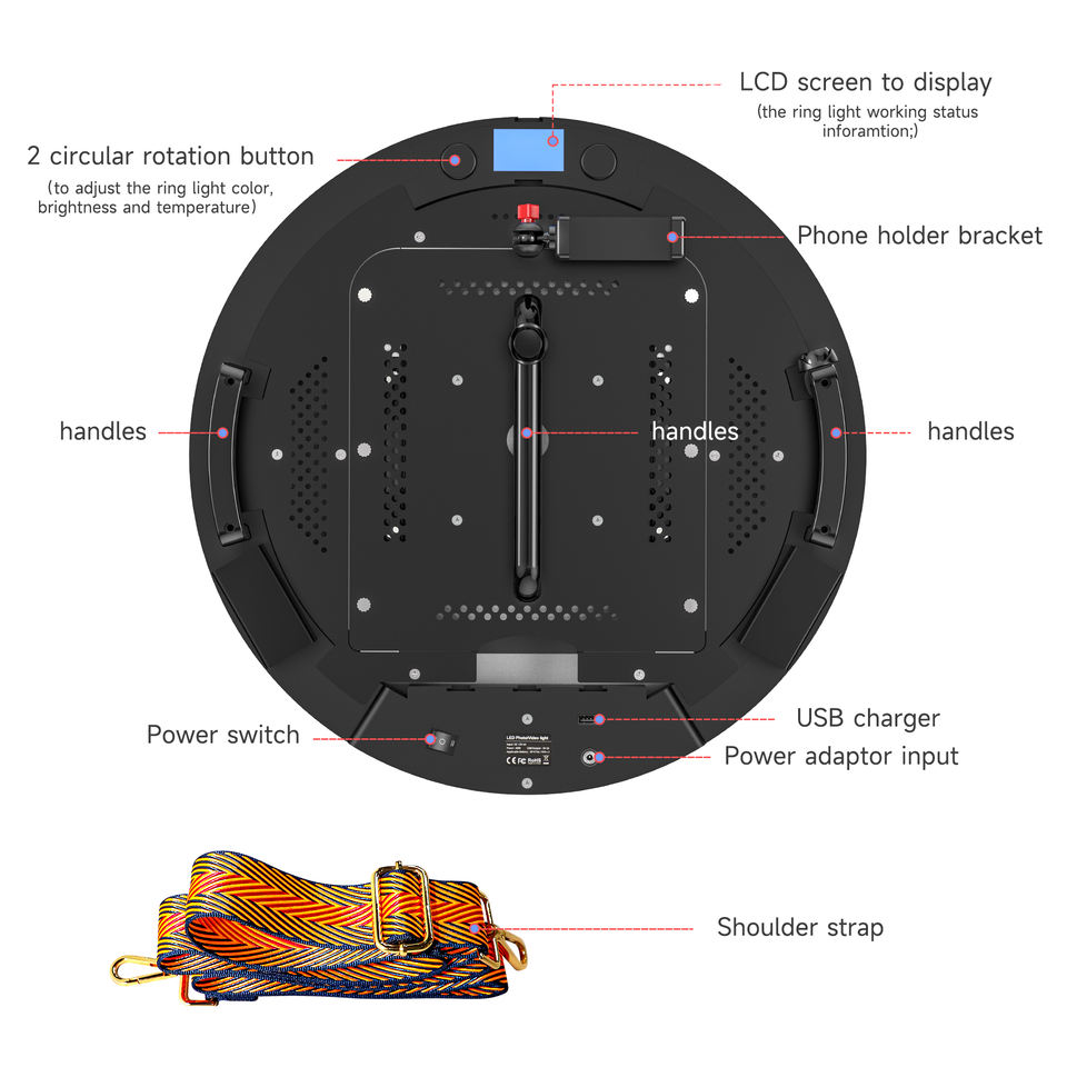 บูธถ่ายรูป iPad แบบมือถือ OEM พร้อมไฟวงแหวนในตัวที่สามารถปรับได้สำหรับงานแต่งงานและงานปาร์ตี้