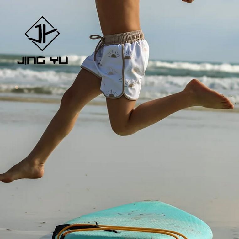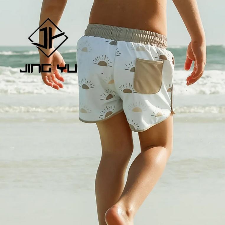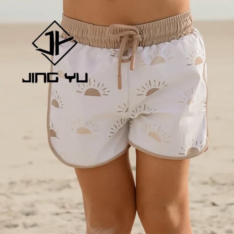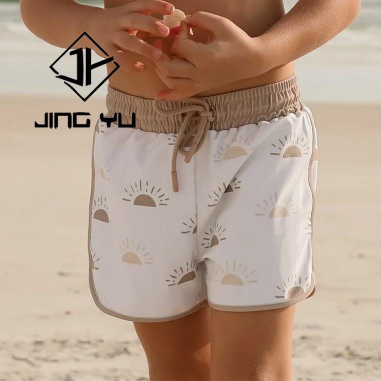 ชุดว่ายน้ำเด็กฮาวายแบบ OEM ลายพิมพ์พร้อมเชือกผูก กางเกงว่ายน้ำเด็กสั่งทำพิเศษ ชุดว่ายน้ำเด็กไนลอน