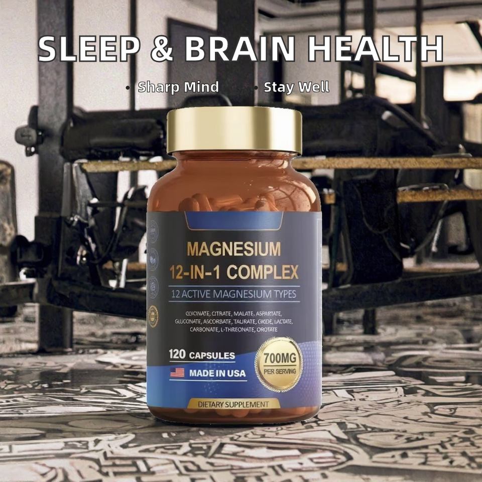 อาหารเสริมเพื่อการนอนหลับที่ดี OEM แมกนีเซียมไกลซิเนตบริสุทธิ์ ปราศจากกลูเตน สำหรับผู้ใหญ่ เสริมสร้างภูมิคุ้มกัน บรรจุ 60 แคปซูลต่อแพ็ค
