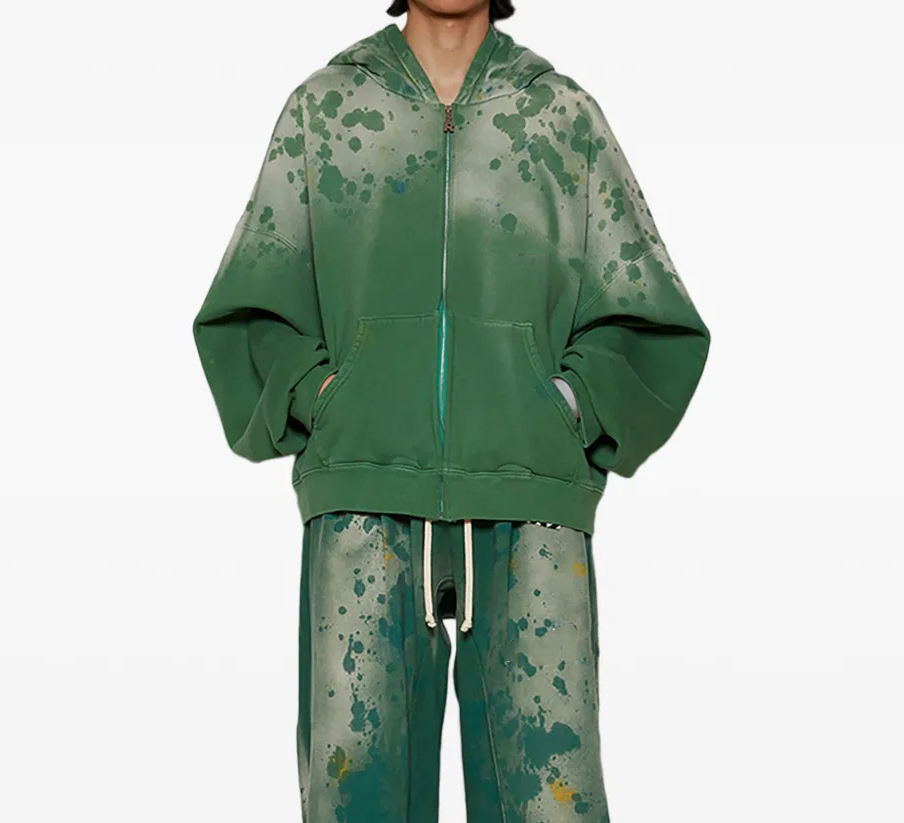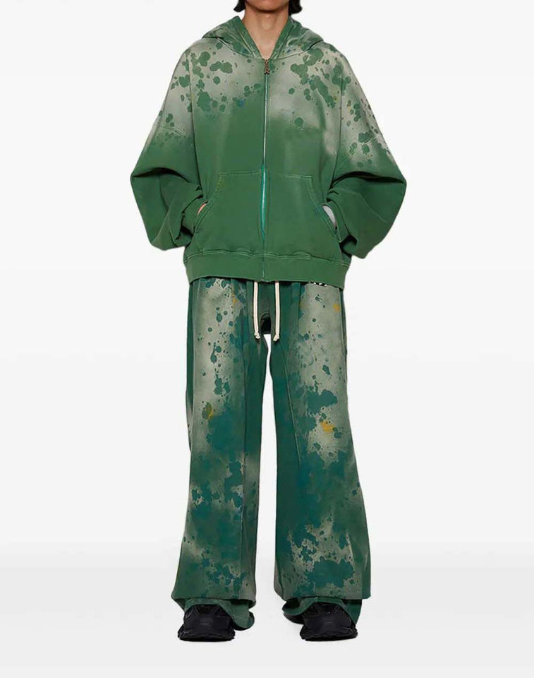 OEM Heavy-duty Acid Wash of Oversized 500g Combed Cotton Distressed Hoodie Custom Streetwear Sweatpants and Hoodie Set