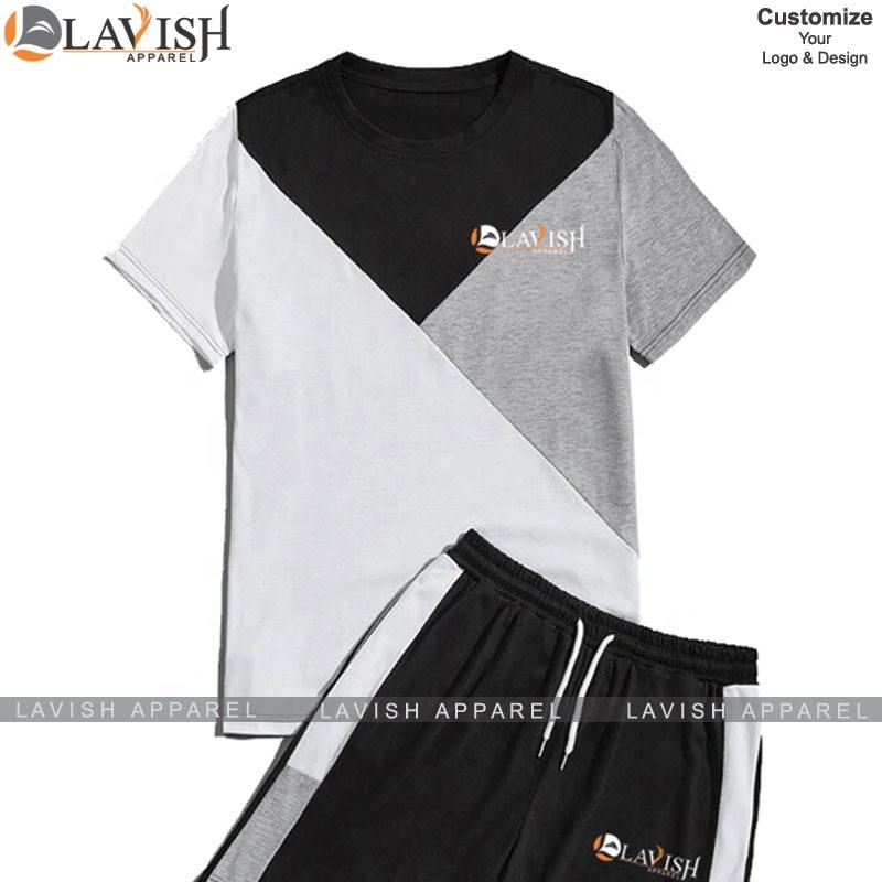 เสื้อยืดและกางเกงขาสั้นชุดออกกำลังกายผู้ชาย/ผู้หญิง คุณภาพสูง OEM ผ้าฝ้าย 100% สั่งทำได้ ใส่สบาย ระบายเหงื่อ ต้านเชื้อแบคทีเรีย