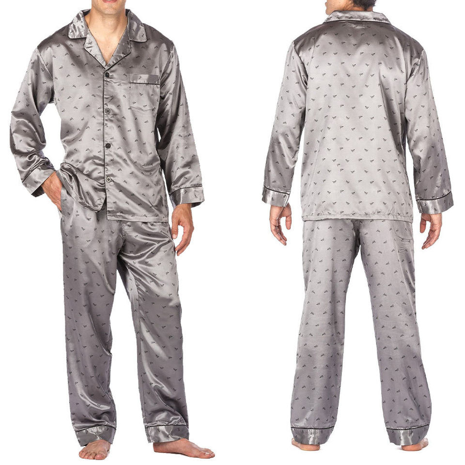 OEM High Quality Breathable Thermal Casual Printed Silk Satin Men's Sleepwear Suits Luxury Night Suits Low MOQ