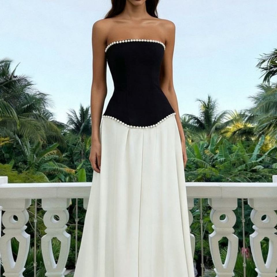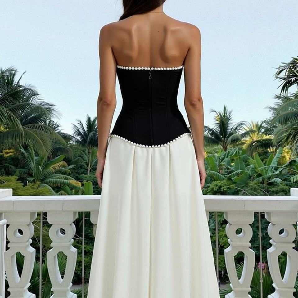 ชุดเดรสยาวแบบไม่มีสายคล้องไหล่ สีสันตัดกัน คุณภาพสูงจากโรงงานผู้ผลิต (OEM) เหมาะสำหรับงานปาร์ตี้ หรืองานเลี้ยงตอนเย็น ดีไซน์หรูหราสำหรับสุภาพสตรี