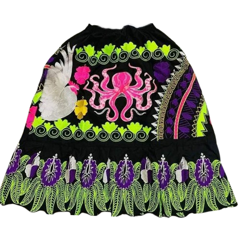 กระโปรงยาวสไตล์ฮาวายสำหรับผู้หญิงกระโปรงโสร่งผ้าโพลีเอสเตอร์เย็บปักเย็บติดผ้ายืดหยุ่นพิมพ์ลาย