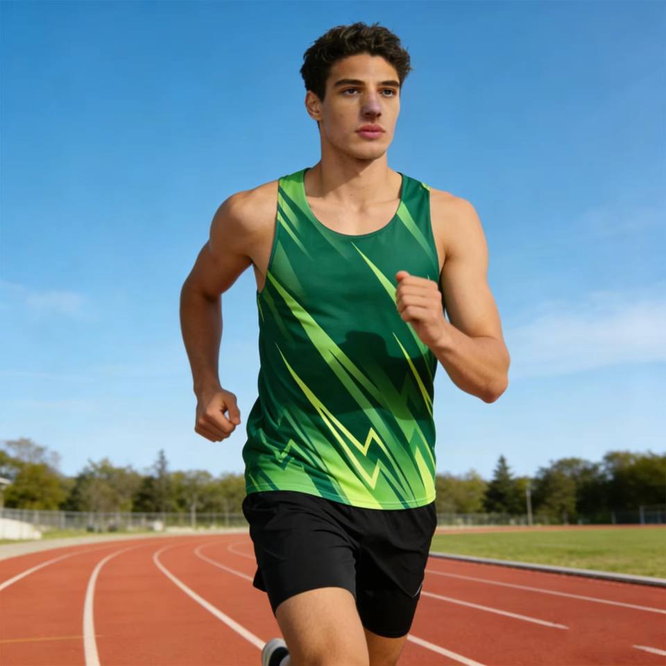 เสื้อกล้ามวิ่งออกกำลังกายฟิตเนสสำหรับวิ่งมาราธอนน้ำหนักเบาพิเศษ พิมพ์ลายโลโก้ตามสั่งคุณภาพสูงแบบ OEM ด้วยเทคนิคการพิมพ์แบบระเหิดด้วยความร้อน