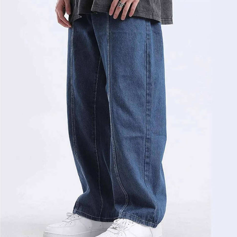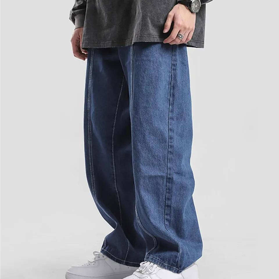 กางเกงยีนส์เดนิมทรงตรงเอวกลางสำหรับผู้ชาย คุณภาพสูงแบบ OEM ขนาดสั่งทำพิเศษ ตกแต่งกระเป๋าขนาดใหญ่ พิมพ์ลาย สกินนี่