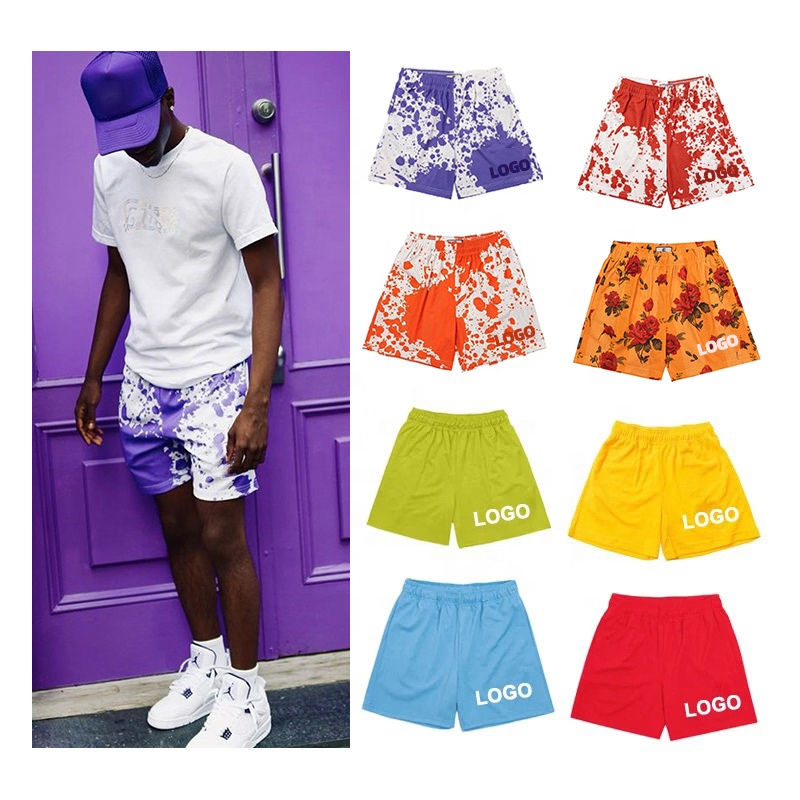 กางเกงบาสเก็ตบอลตาข่ายแบบสวมใส่สบายสำหรับทุกเพศ พิมพ์ลายดิจิทัลคุณภาพสูง OEM ผ้าฝ้าย 100% เนื้อหนา พิมพ์โลโก้ตามสั่ง สไตล์วินเทจ เป็นมิตรกับสิ่งแวดล้อม