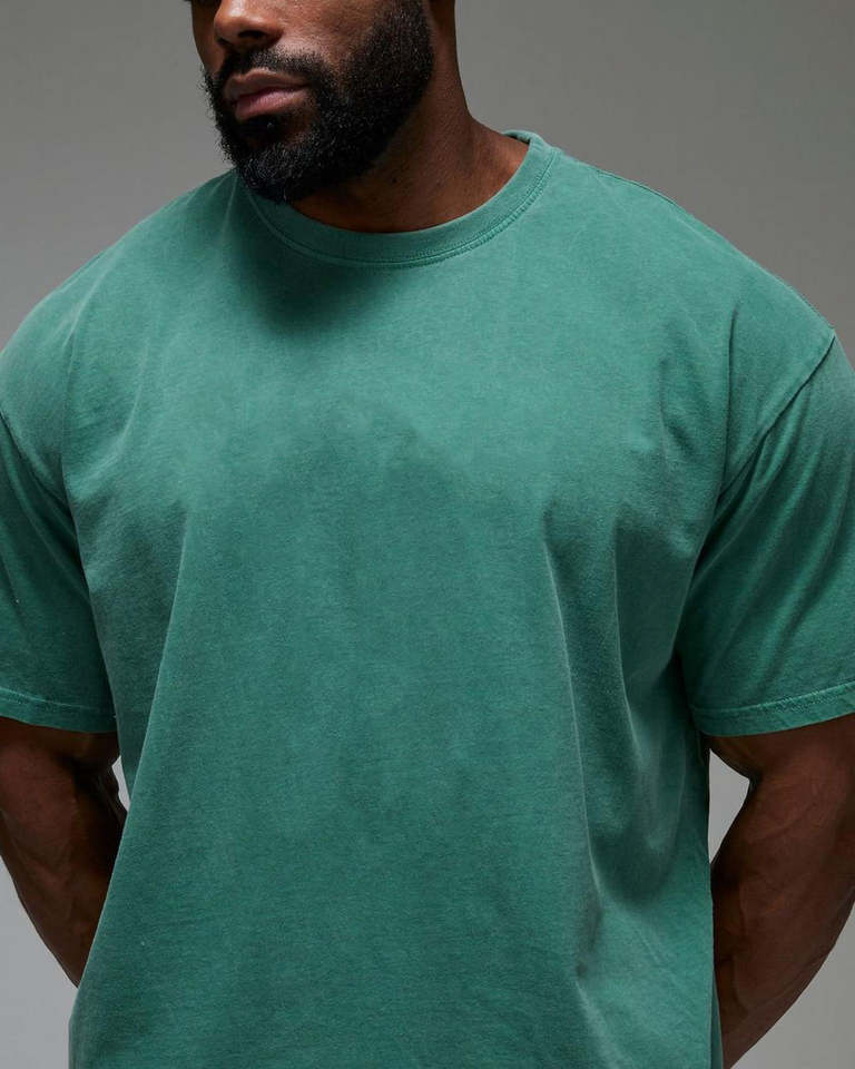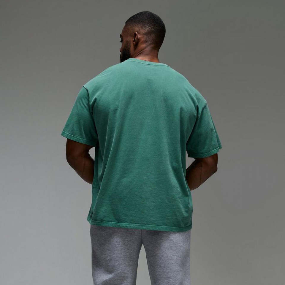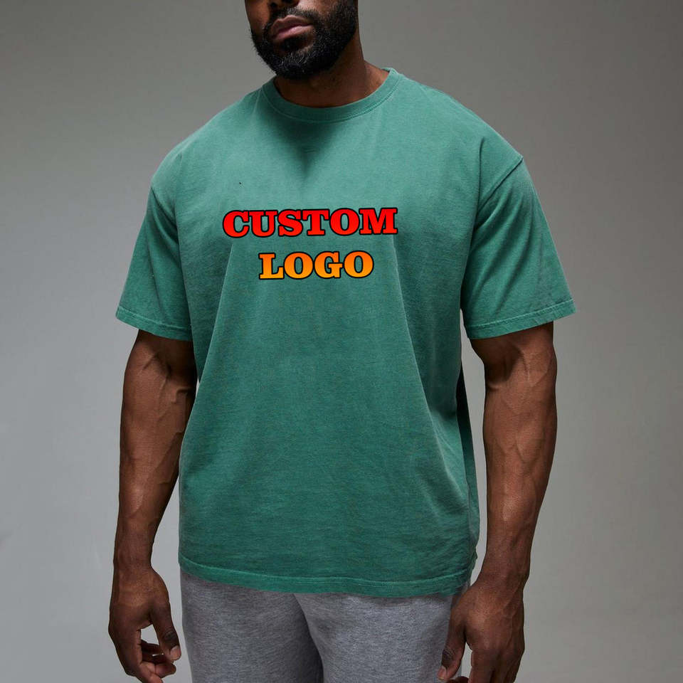 เสื้อยืดคอกลมแขนสั้นสีเขียวล้วนทรงหลวมสำหรับผู้ชาย คุณภาพสูงแบบ OEM ผลิตจากผ้าฝ้ายถัก 100% ดีไซน์สั่งทำพิเศษ