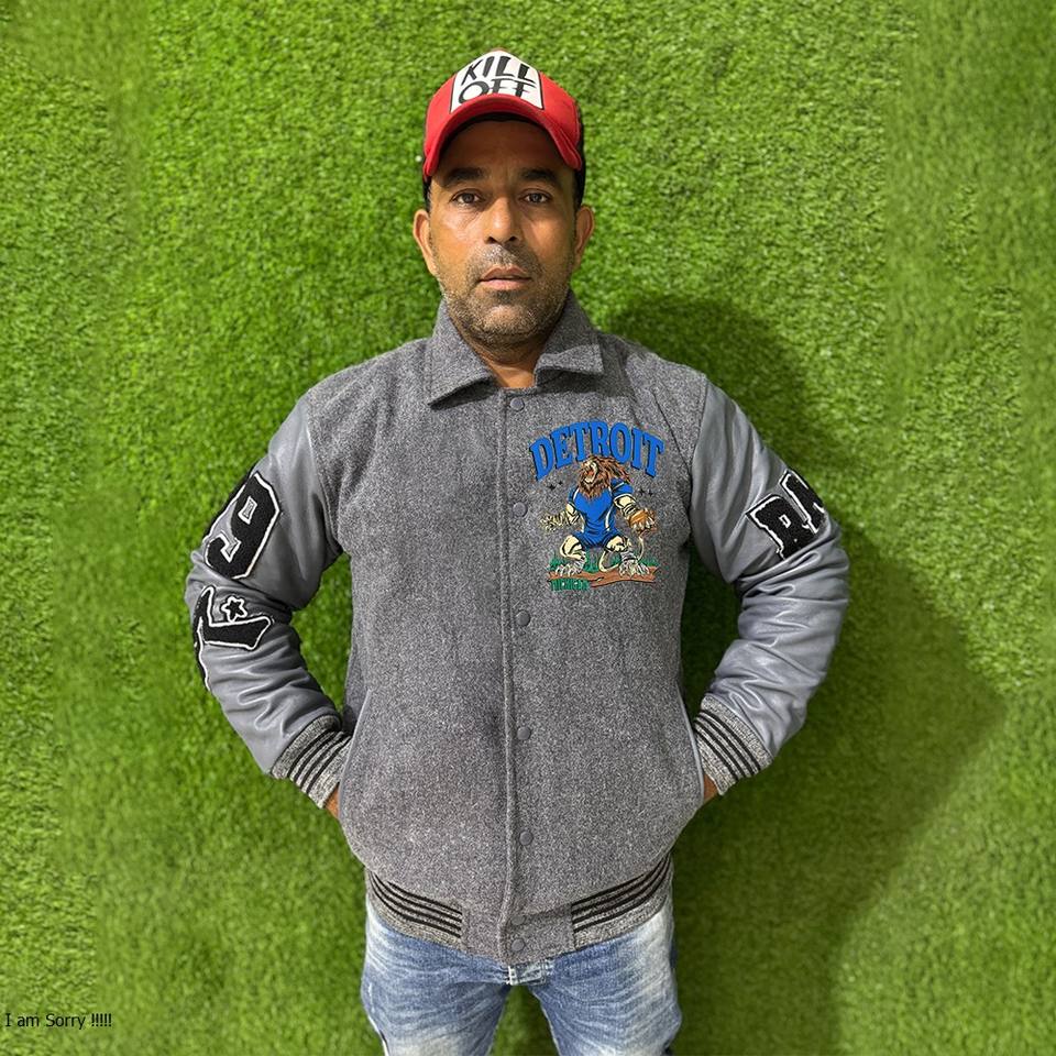 เสื้อแจ็คเก็ตบอมเบอร์ผู้ชายคุณภาพสูง ผ้าเคลือบอย่างดี ดีไซน์ปักลาย ปกคอพับ แขนเสื้อแบบ Letterman สไตล์สตรีทแฟชั่นสำหรับฤดูใบไม้ร่วงและฤดูหนาว