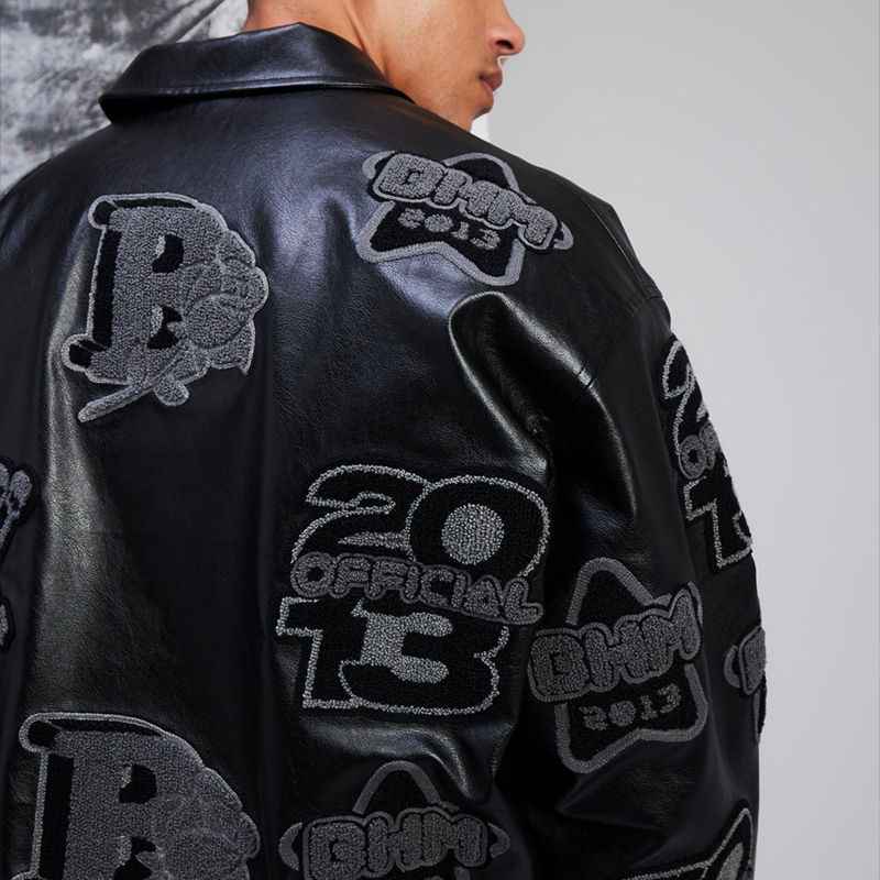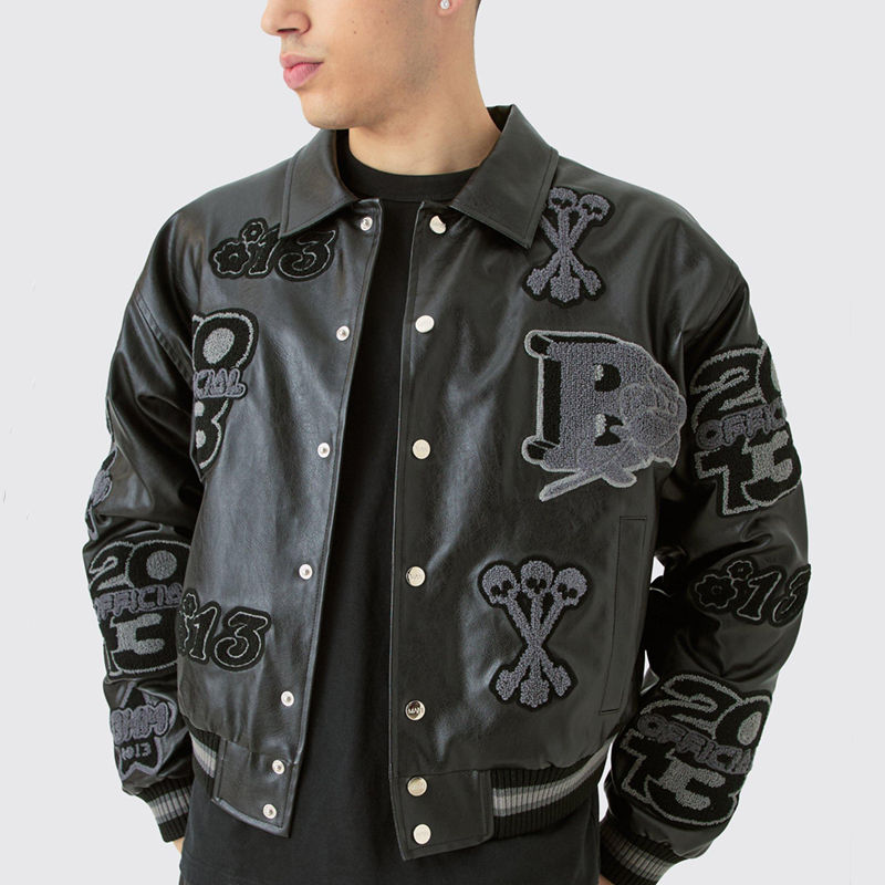 แจ็กเก็ตเลตเตอร์แมนวิทยาลัยวิทยาลัยหนังผู้ชายเสื้อครอปแบบสตรีทแวร์ผลิตตามสั่งเคลือบฮิปฮอป