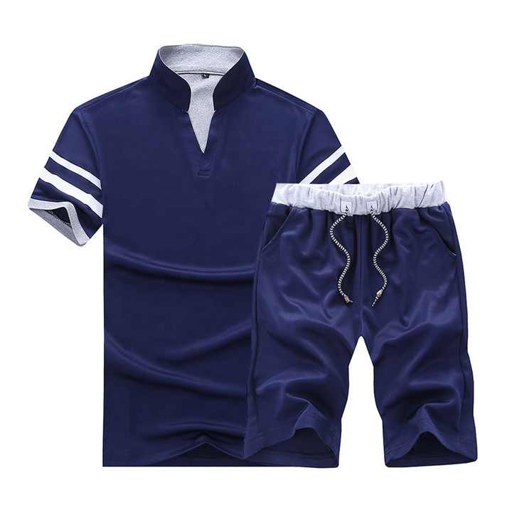 OEM ชุดกีฬาแขนสั้นสำหรับผู้ชาย, เซตคู่ดีไซน์เรียบง่ายสำหรับใส่ออกกำลังกายในฤดูร้อนมีกระเป๋าและกางเกงขาสั้น