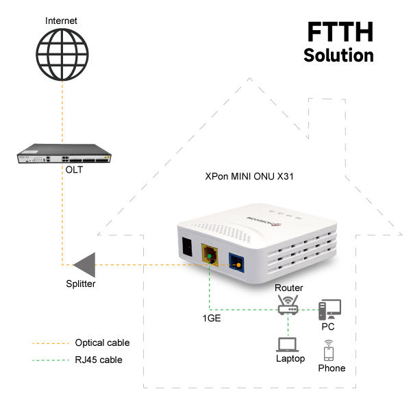 ชื่อผลิตภัณฑ์:1พอร์ตเดียว Ge กิกะบิต RJ45ไมโครไฟเบอร์หน่วยเครือข่าย Optica ONU