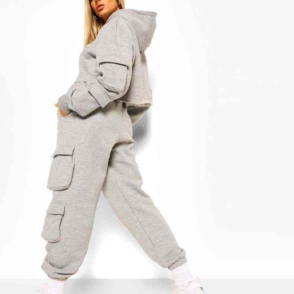 ชุดวอร์มสองชิ้นสำหรับวิ่งกระเป๋าคาร์โก้ผู้หญิงโอเวอร์ไซส์เหนือเข่าชุดสำหรับฤดูหนาวผลิตตามสั่ง