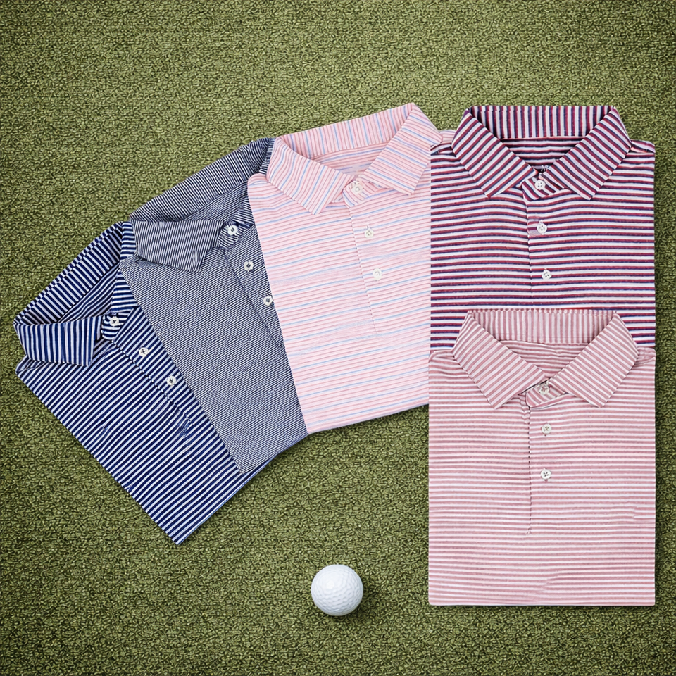 เสื้อโปโลผู้ชายลายทาง แบรนด์ OEM คุณภาพสูง แห้งเร็ว ระบายเหงื่อได้ดี เหมาะสำหรับเล่นกีฬาและสวมใส่ลำลอง รับสกรีนโลโก้