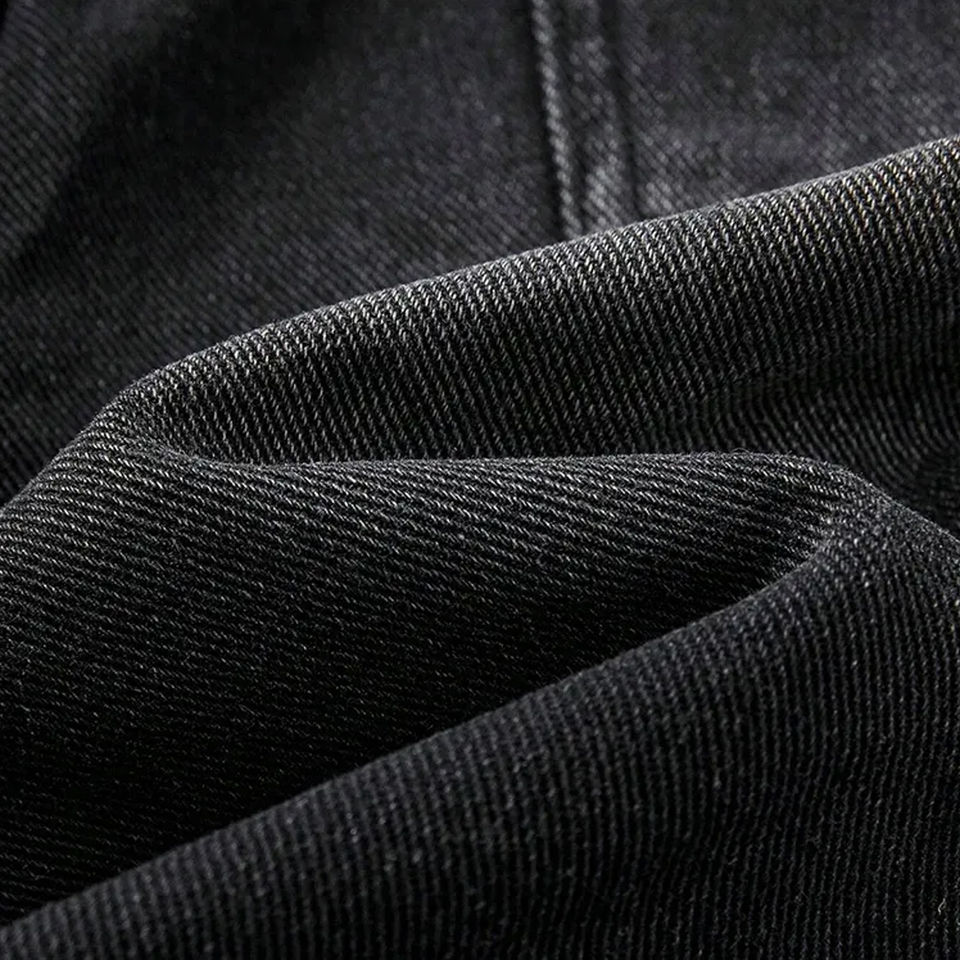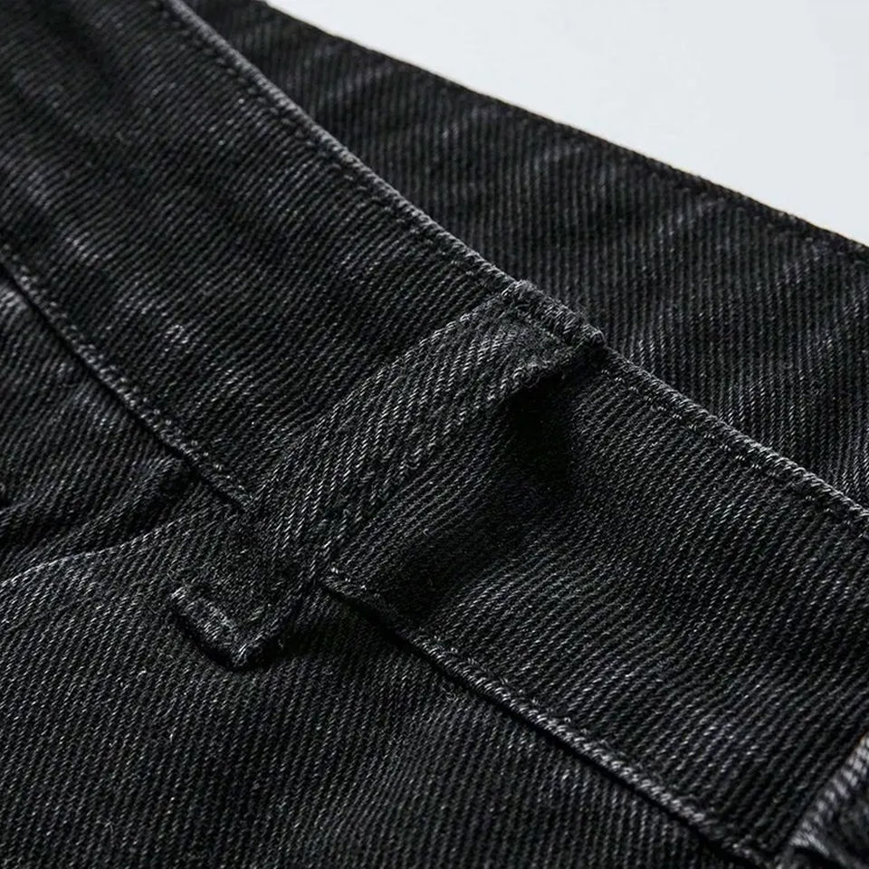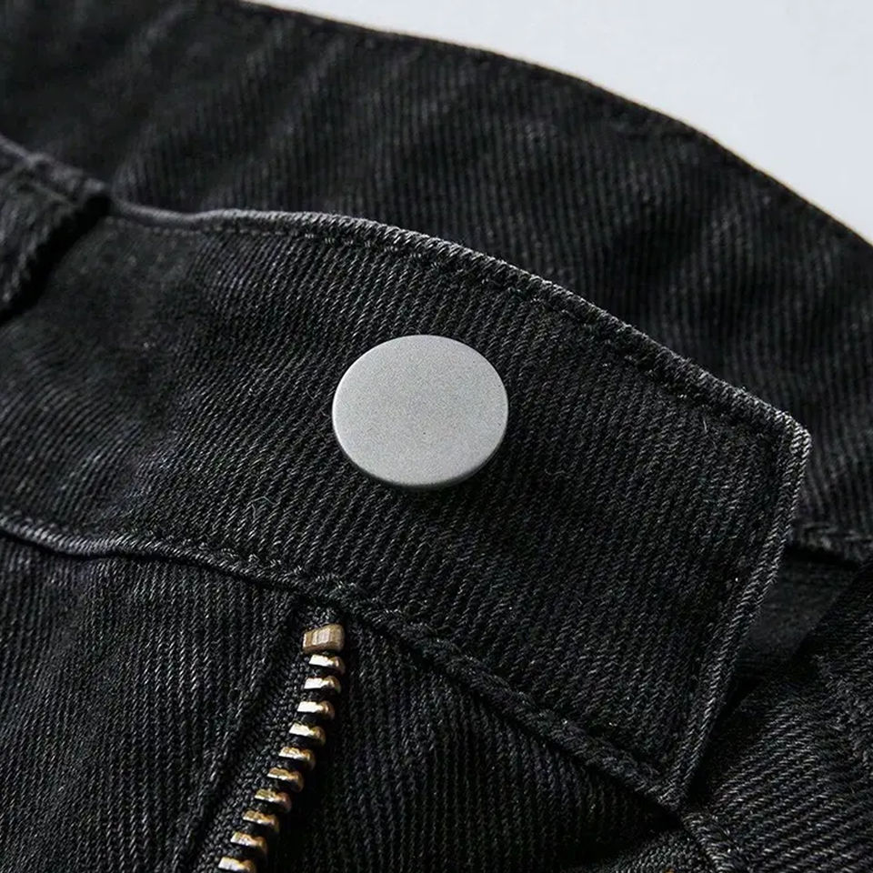 กางเกงยีนส์ลำลองผู้ชายไซส์ใหญ่ ระบายอากาศได้ดี ตกแต่งด้วยโลโก้แบบกำหนดเอง ประดับด้วยคริสตัล ขอบดิบ ผ้าไม่ทอเนื้อหนา คุณภาพสูงจากโรงงานผู้ผลิต (OEM)