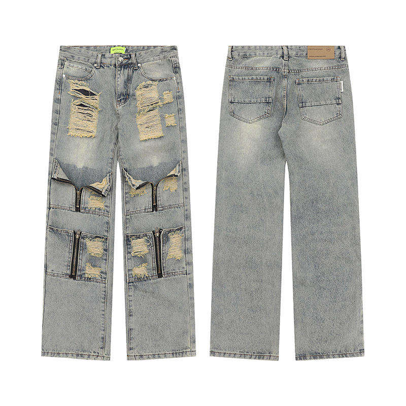 กางเกงยีนส์ทรงตรงผู้ชาย ผ้าฝ้าย 100% คุณภาพสูงจากโรงงาน ทรงหลวม ระบายอากาศได้ดี เหมาะสำหรับฤดูร้อนและฤดูใบไม้ผลิ ลายเรียบ ขายส่ง