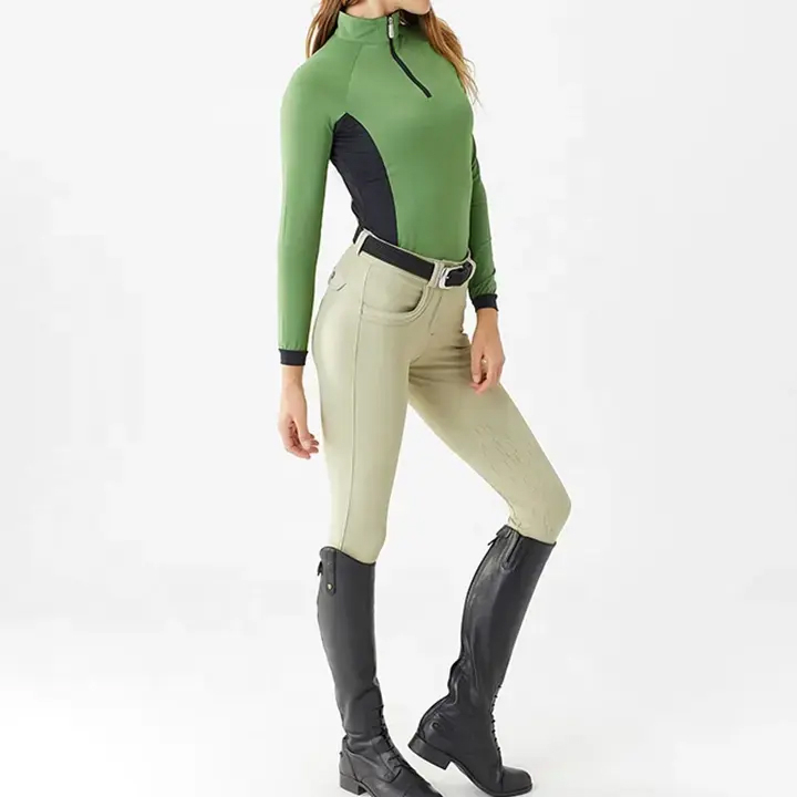 เสื้อขี่ม้าแขนยาวผ้าสเตรชคุณภาพสูง OEM สีดำ เสื้อแข่งขี่ม้า ชั้นในสำหรับแข่งขี่ม้า OEM