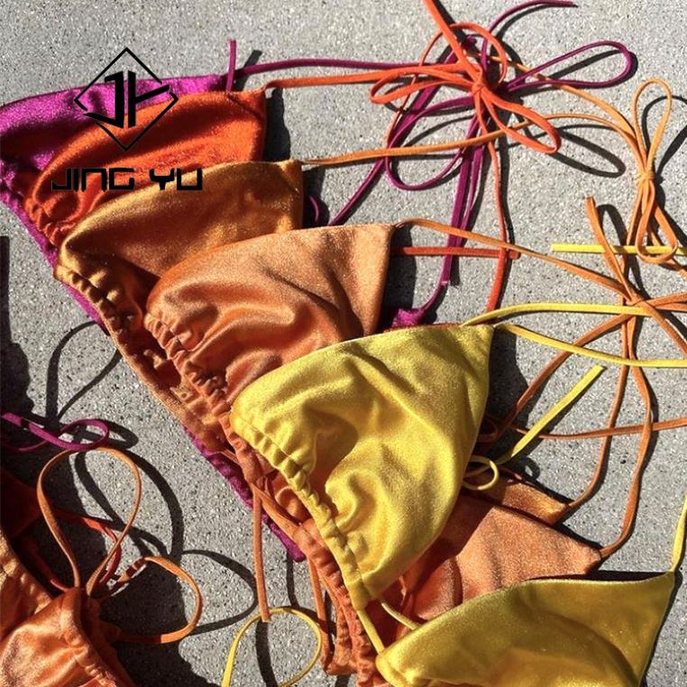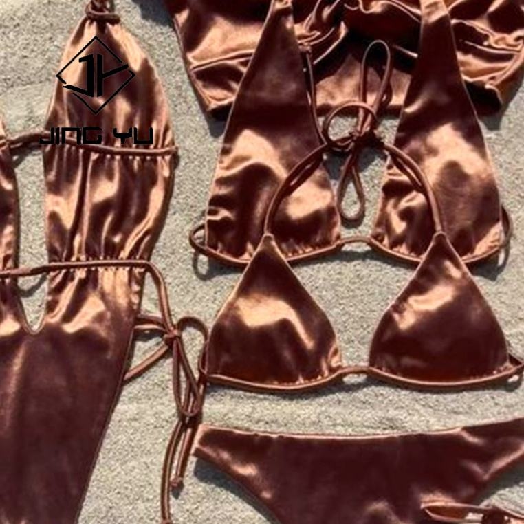 ชุดว่ายน้ำไมโครบิกินี่ผ้ารีไซเคิลสั่งทำพิเศษ คุณภาพสูงระดับ OEM สำหรับผู้หญิง ดีไซน์สายรัดหรูหรา ผ้ามันเงา