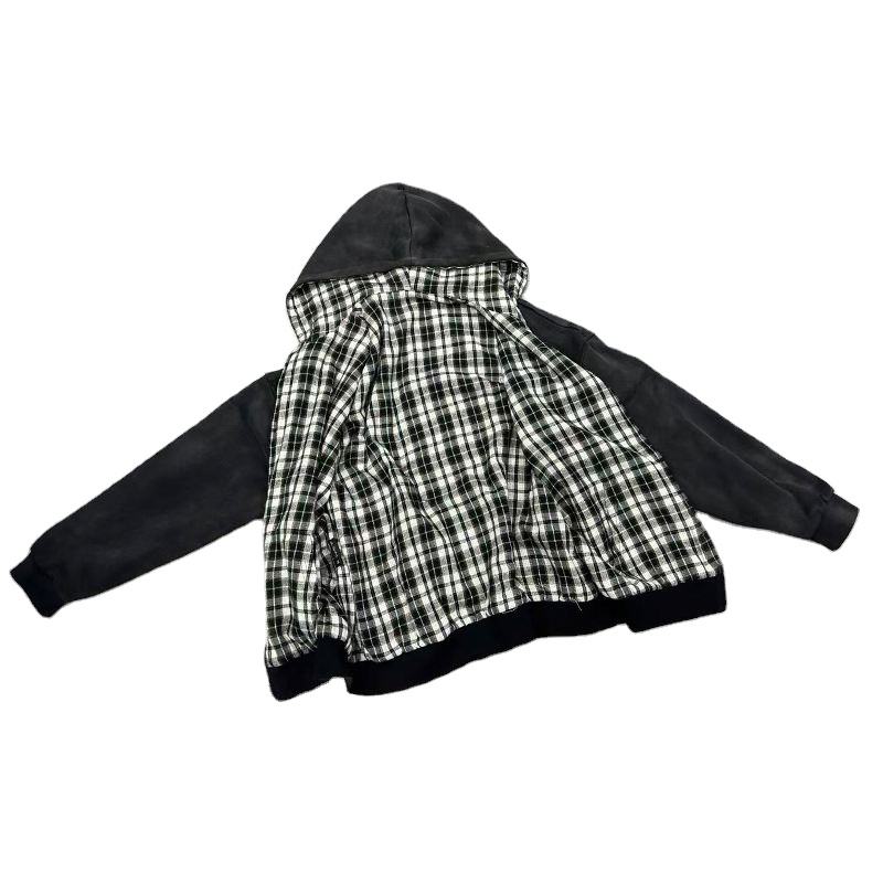 เสื้อฮู้ดดี้ผ้าคอตตอนหนานุ่มสไตล์สตรีทแวร์ลายไท-ได OEM แบบสั่งทำพิเศษ พร้อมลายสก็อตปักสองด้าน ทรงโอเวอร์ไซส์ แบบกลับด้านได้