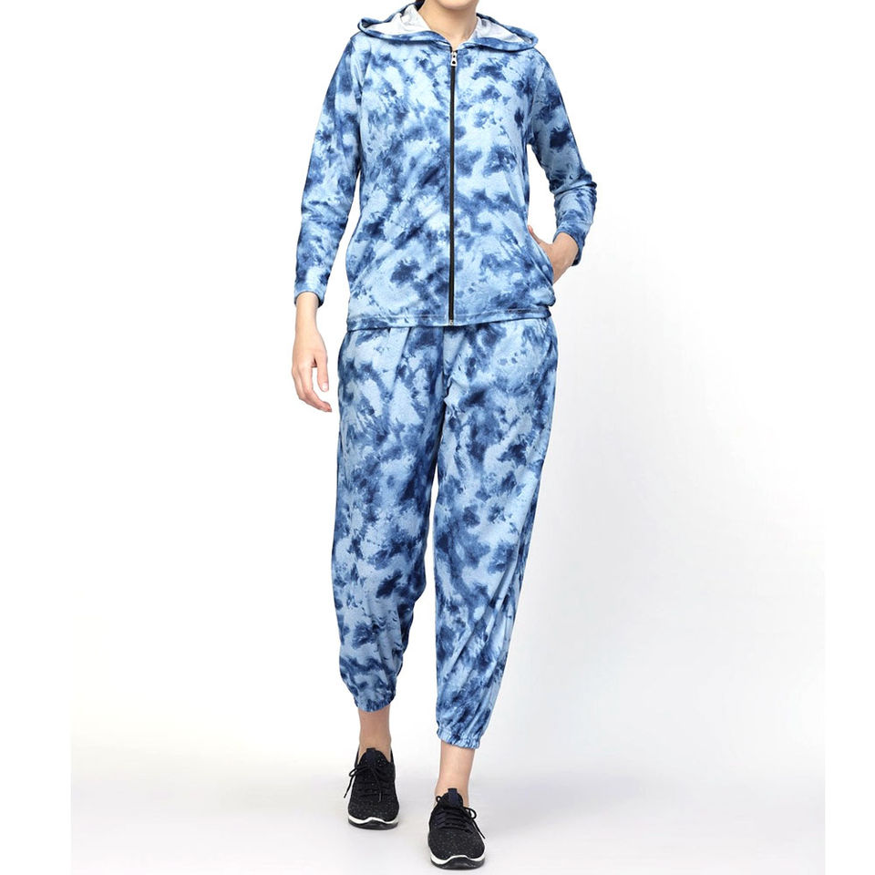 ชุดวอร์มผู้หญิงแบบมีฮู้ด ผ้าถักพิมพ์ลายแบบซับลิเมชั่น ผลิตโดย OEM เป็นมิตรกับสิ่งแวดล้อม ใส่สบายในฤดูหนาว ชุดแทรคสูทพิมพ์ลายสำหรับผู้หญิง
