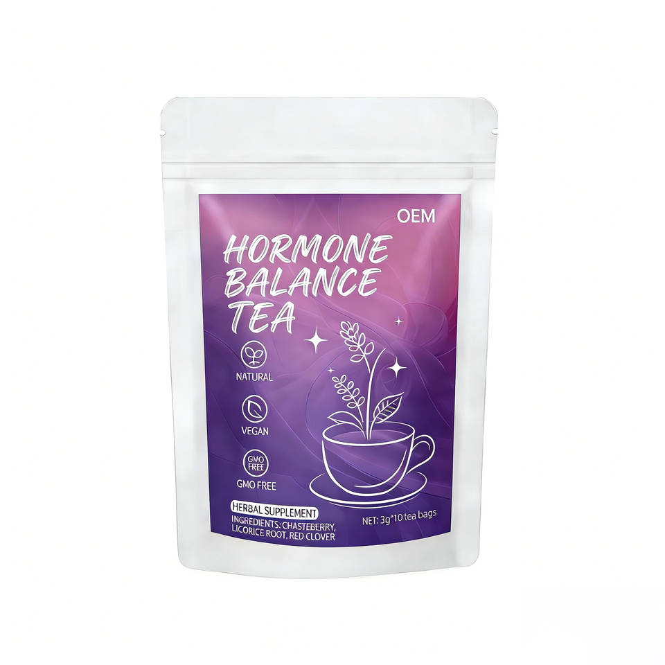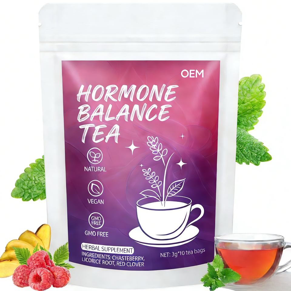 ชาสมุนไพรปรับสมดุลฮอร์โมนสำหรับผู้หญิง OEM ผสมสารสกัดจากผลชะเทียบีร์ ใบราสเบอร์รี่ โคลเวอร์แดง ออร์แกนิค ธรรมชาติ มังสวิรัติ ปราศจาก GMO บรรจุ 10 ซองชาในกล่อง