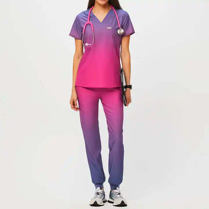 ชุดยูนิฟอร์มโรงพยาบาลงาน OEM ชุดสครับสีแบบซับลิเมชันสำหรับโรงพยาบาลชุดวิ่งสำหรับผู้หญิง