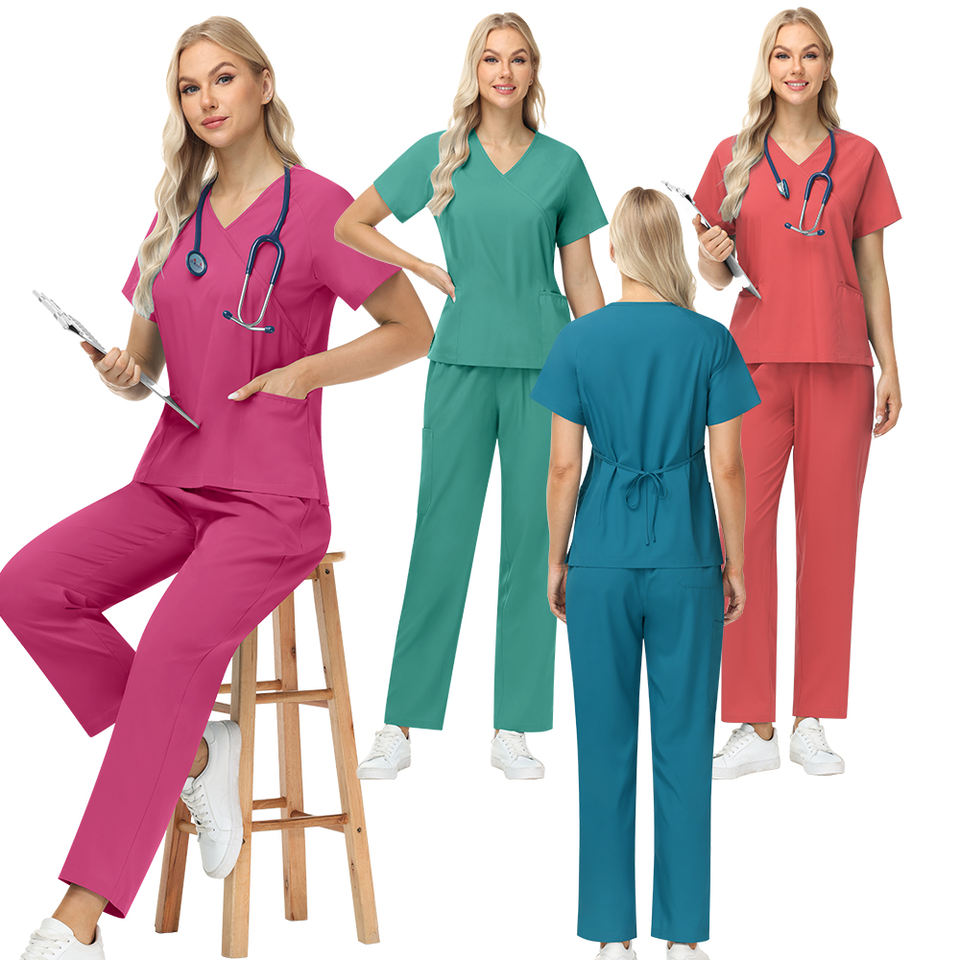 ชุดสครับขัดผิวผ้าฝ้ายสแปนเด็กซ์ชุดเครื่องแบบพยาบาลทางการแพทย์ชุดสครับผลิตจากผ้าฝ้ายสแปนเด็กซ์ทำตามสั่ง