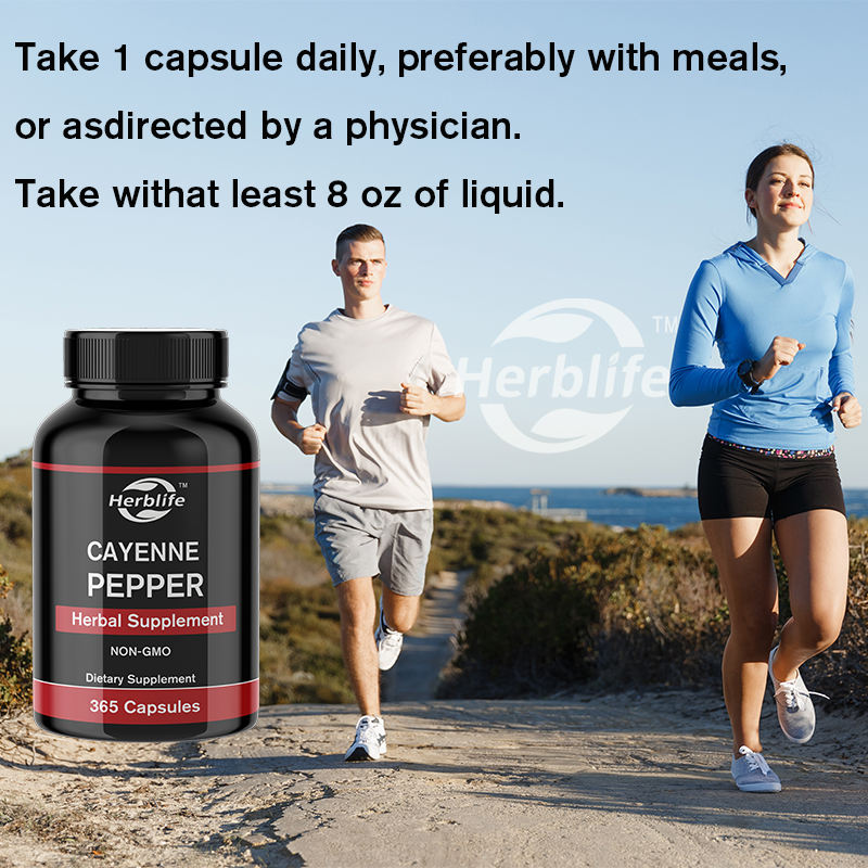 OEM ขายดี - ปรับแต่งได้ - พริกคาเยน (365 แคปซูล) ไม่มีแมกนีเซียมหรือสารเติมแต่งจากข้าว - แคปซูลพริกคาเยนออร์แกนิก