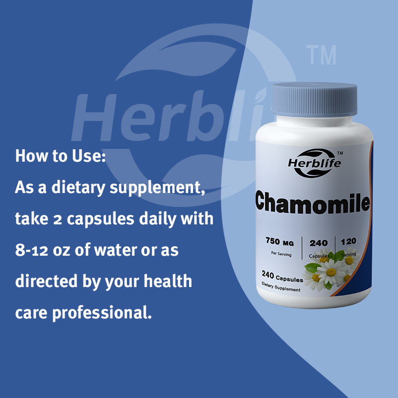 OEM ขายดี - ปรับแต่งได้ - คาโมไมล์ 750 มก., 240 แคปซูลมังสวิรัติ, 120 หน่วยบริโภค - ไม่ใช่จีเอ็มโอ, ปราศจากกลูเตน