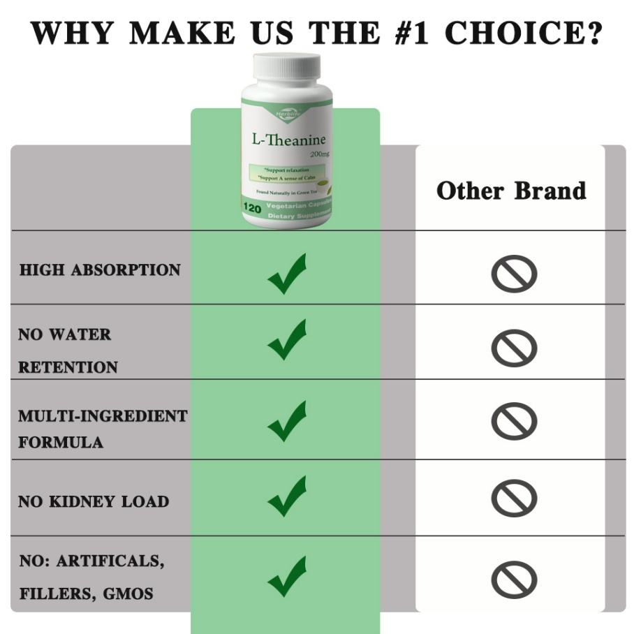 OEM ขายดี - ปรับแต่งได้ - แอล-ธีอะนีน 200 มก. - 120 แคปซูลสำหรับผู้ทานมังสวิรัติ - ไม่มีสเตียเรต - วีแกน - ไม่ใช่จีเอ็มโอ - ปราศจากกลูเตน