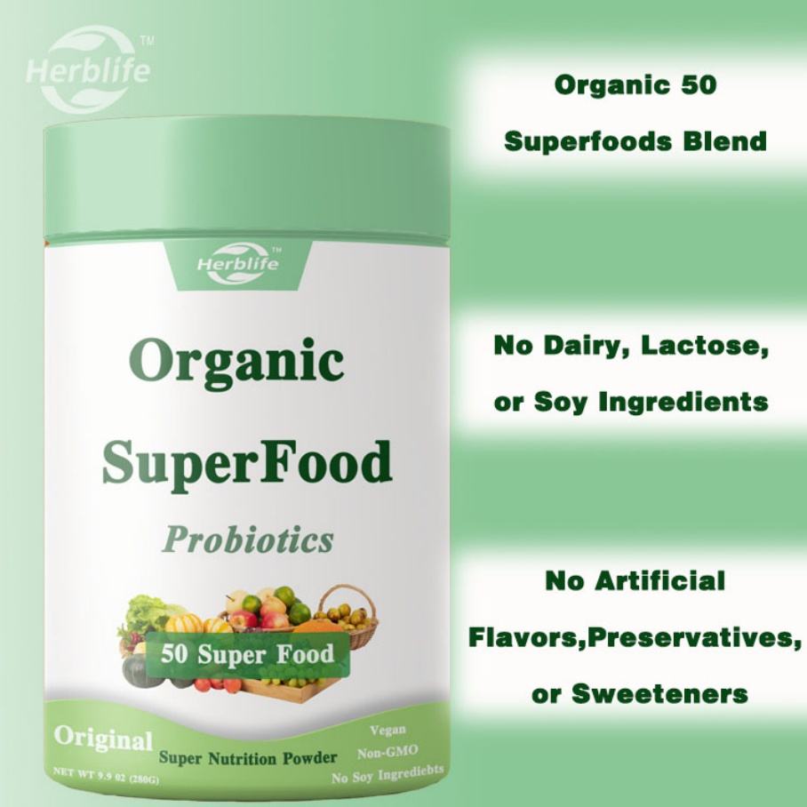 OEM ขายดี - ปรับแต่งได้ - ผงสีเขียวออร์แกนิก + ซุปเปอร์ฟู้ด 50 ชนิด, รสออริจินัล - โพรไบโอติก 1 พันล้านสำหรับสุขภาพทางเดินอาหาร