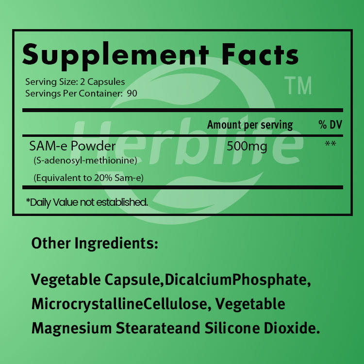 OEM ขายดี - ปรับแต่งได้ - อาหารเสริม SAM-e - แคปซูล S-อะเดโนซิล-แอล-เมไทโอนีน ความเข้มข้นสูง 500 มก.