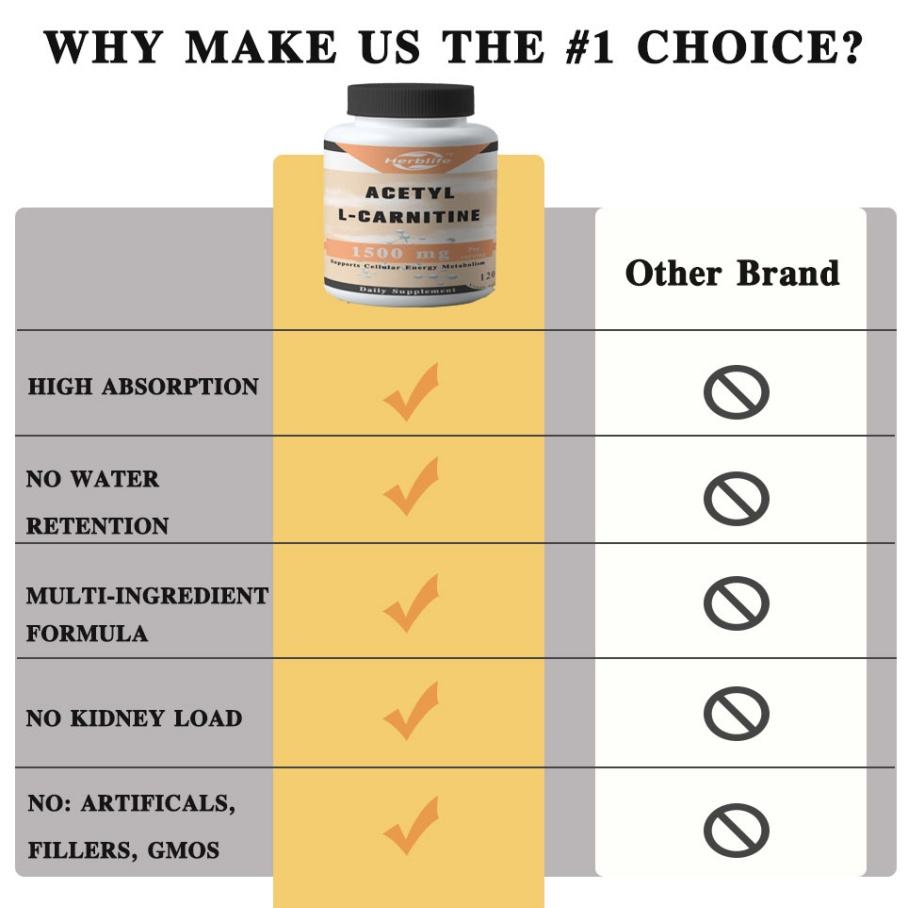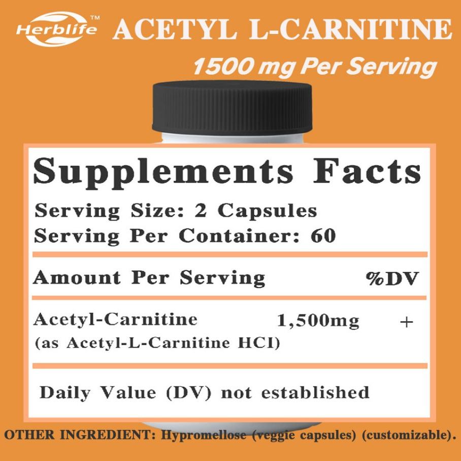 OEM ขายดี อาหารเสริมกีฬา ปรับแต่งได้ อะซีทิลแอล-คาร์นิทีน 1500 มก. แคปซูลเข้มข้นสูง 120 เม็ด ช่วยเสริมสร้างการผลิตพลังงาน