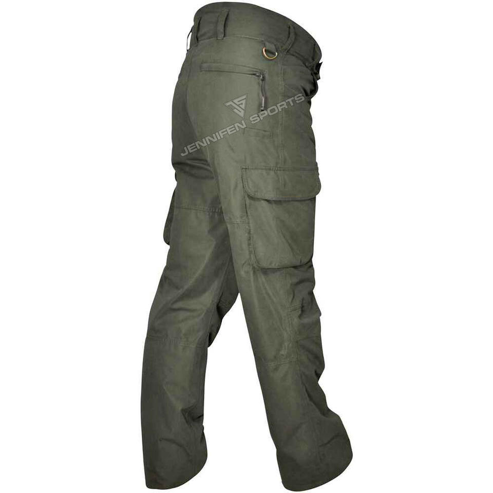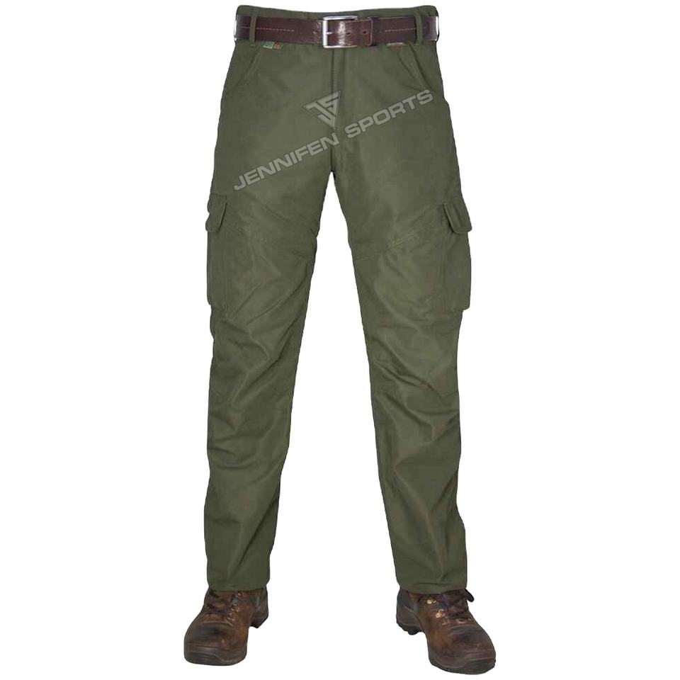 กางเกงล่าสัตว์ผ้าใบผ้าแคนวาสสำหรับผู้ชายมีซิป & กระดุมปิดด้านหน้าเอวสูงและกระเป๋าข้างมีสายคาดเอว100%
