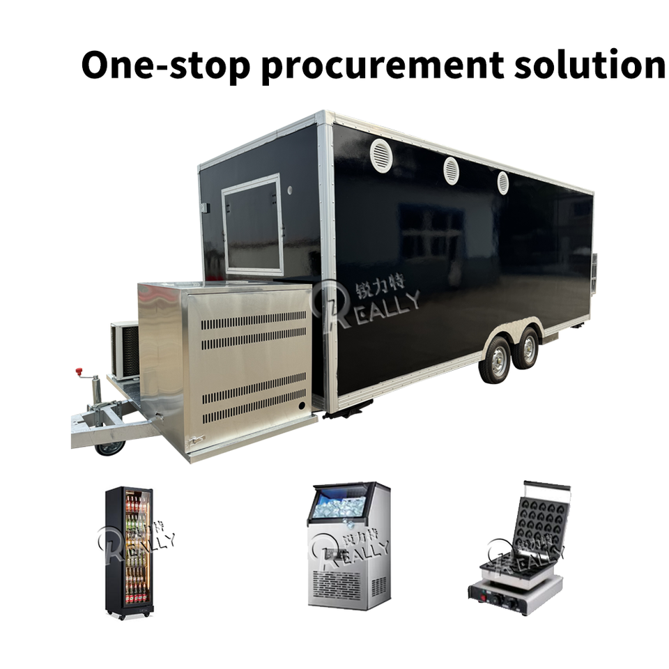 เครื่องพ่วงอาหารเคลื่อนที่สำหรับขายปลีกขนมขบเคี้ยวผลิตภัณฑ์นมขนมฮอทด็อกทำจากบาร์บีคิวทำจากข้าวโพด