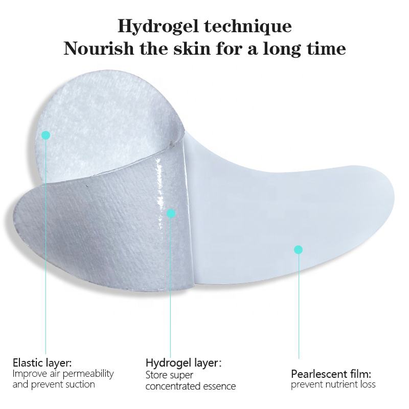 แผ่นมาส์กใต้ตาไฮโดรเจลคอลลาเจน OEM รูปทรงพระจันทร์เสี้ยวขนาดใหญ่ ช่วยให้ผิวกระจ่างใส ลดอาการบวม ลดรอยคล้ำใต้ตา แผ่นเจลเย็น