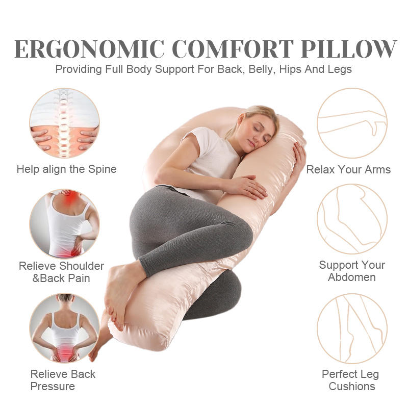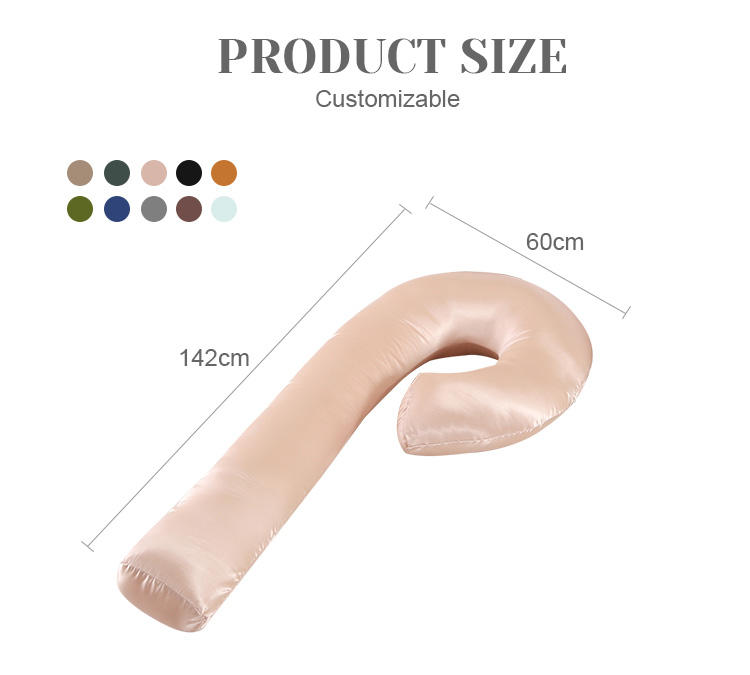 หมอนรองครรภ์แบบยาว OEM รุ่น J-type พร้อมปลอกผ้าเย็น รองรับทั้งตัว สำหรับคุณแม่ตั้งครรภ์ ช่วยพยุงหน้าท้อง สะโพก และขา