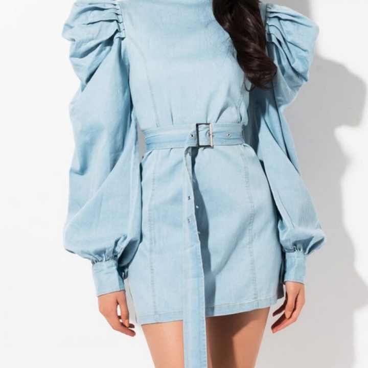 เดรสยีนส์ OEM รุ่นปี 2025 แบบสั่งทำพิเศษสำหรับผู้หญิง ทรงพลีท แขนยาว ความยาวปานกลาง เหมาะสำหรับฤดูร้อน