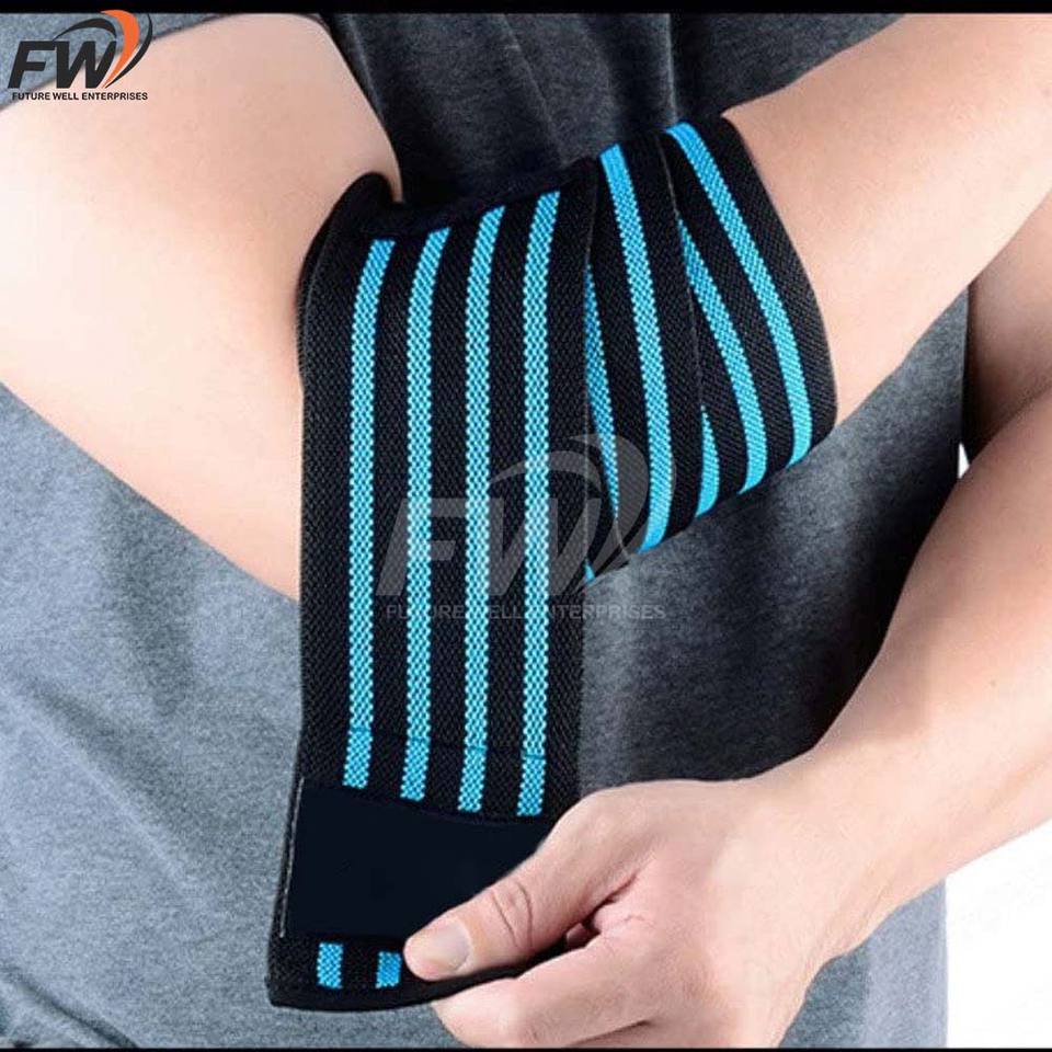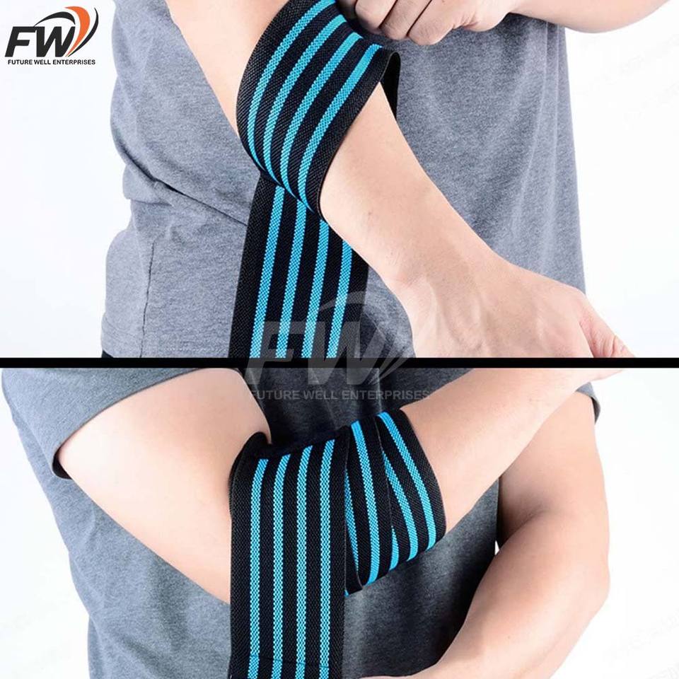 ผ้าพันเข่า OEM แบบยืดหยุ่นสวมใส่สบายและกระชับสำหรับการฝึกซ้อมประจำวัน ผ้าพันเข่าแบบยาวพร้อมตัวล็อคแบบตะขอ