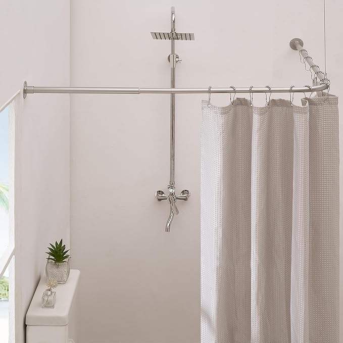 ราวแขวนฝักบัวรูปตัว L แบบ OEM ไม่หย่อนคล้อย ราวโค้ง ราคาโรงงานโดยตรง สำหรับห้องน้ำ อ่างอาบน้ำ ราวแขวนเพดาน พร้อมอุปกรณ์เสริม