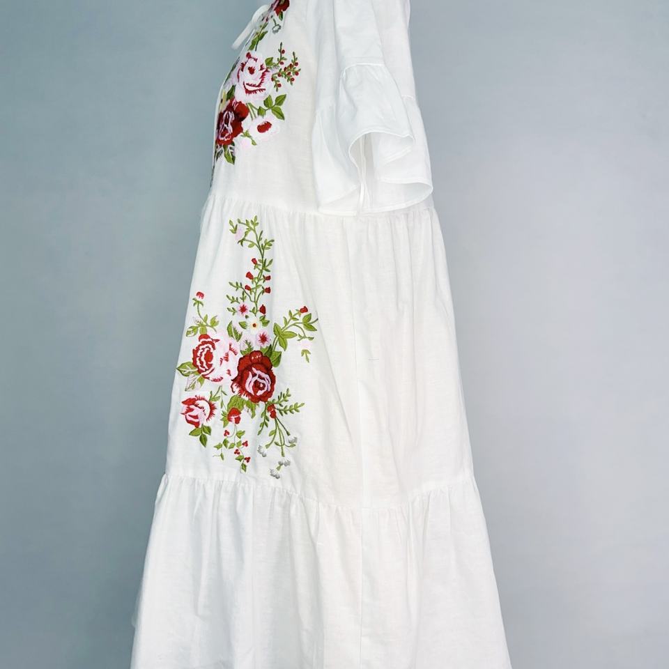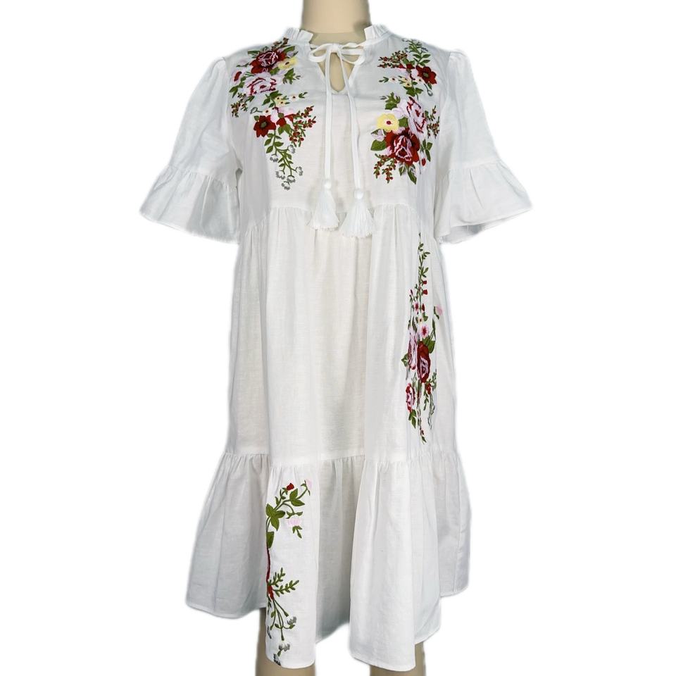 ชุดเดรสปักลายแฟชั่นใหม่สำหรับผู้หญิง OEM สไตล์สดใสหวานแหวว แขนสั้น ทรงหลวม