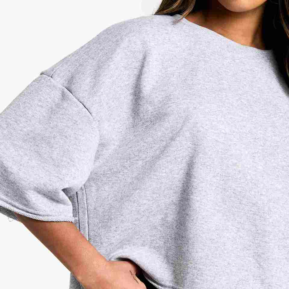 เสื้อยืดผ้าฝ้ายฟลีซหนานุ่มทรงโอเวอร์ไซส์สำหรับผู้หญิง OEM พร้อมโลโก้สั่งทำ ป้องกันรอยยับและระบายอากาศได้ดี เหมาะสำหรับการฝึกซ้อม/ออกกำลังกาย