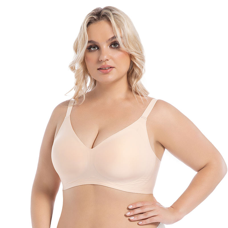 บราเล็ตต์ทรงสปอร์ตขนาดใหญ่สำหรับผู้หญิง OEM เนื้อผ้านิตถักใส่สบาย ป้องกันการหย่อนคล้อย ระบายอากาศดี บราดันทรง สายปรับได้ ไร้ตะเข็บ