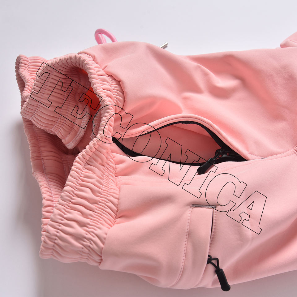 โออีเอ็มสีชมพูอ่อนกางเกงหิมะกันน้ำมีกระเป๋ากางเกงสินค้าระบายอากาศหิมะ