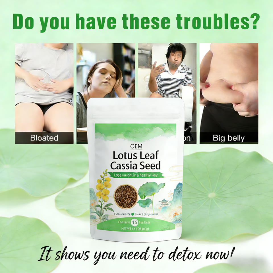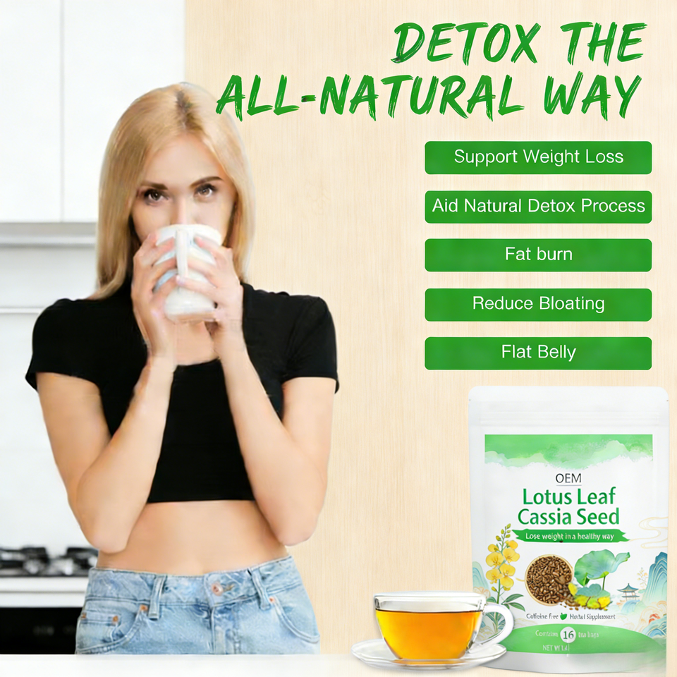 ชาสมุนไพรออร์แกนิคผสมใบบัวและเมล็ดขี้เหล็ก OEM ปราศจากคาเฟอีน สำหรับควบคุมน้ำหนัก บรรจุ 16 ซองชาในกล่อง