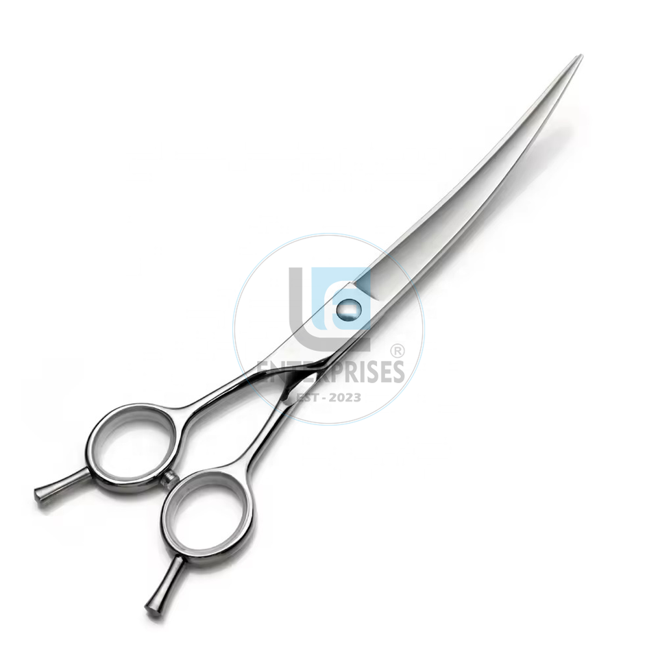 กรรไกรตัดขนสัตว์เลี้ยง OEM ระดับพรีเมียม ขนาด 7 นิ้ว ด้ามจับโค้งทำจากสแตนเลส ใช้งานง่าย ปลอดภัย แม่นยำ สำหรับสุนัขและแมว